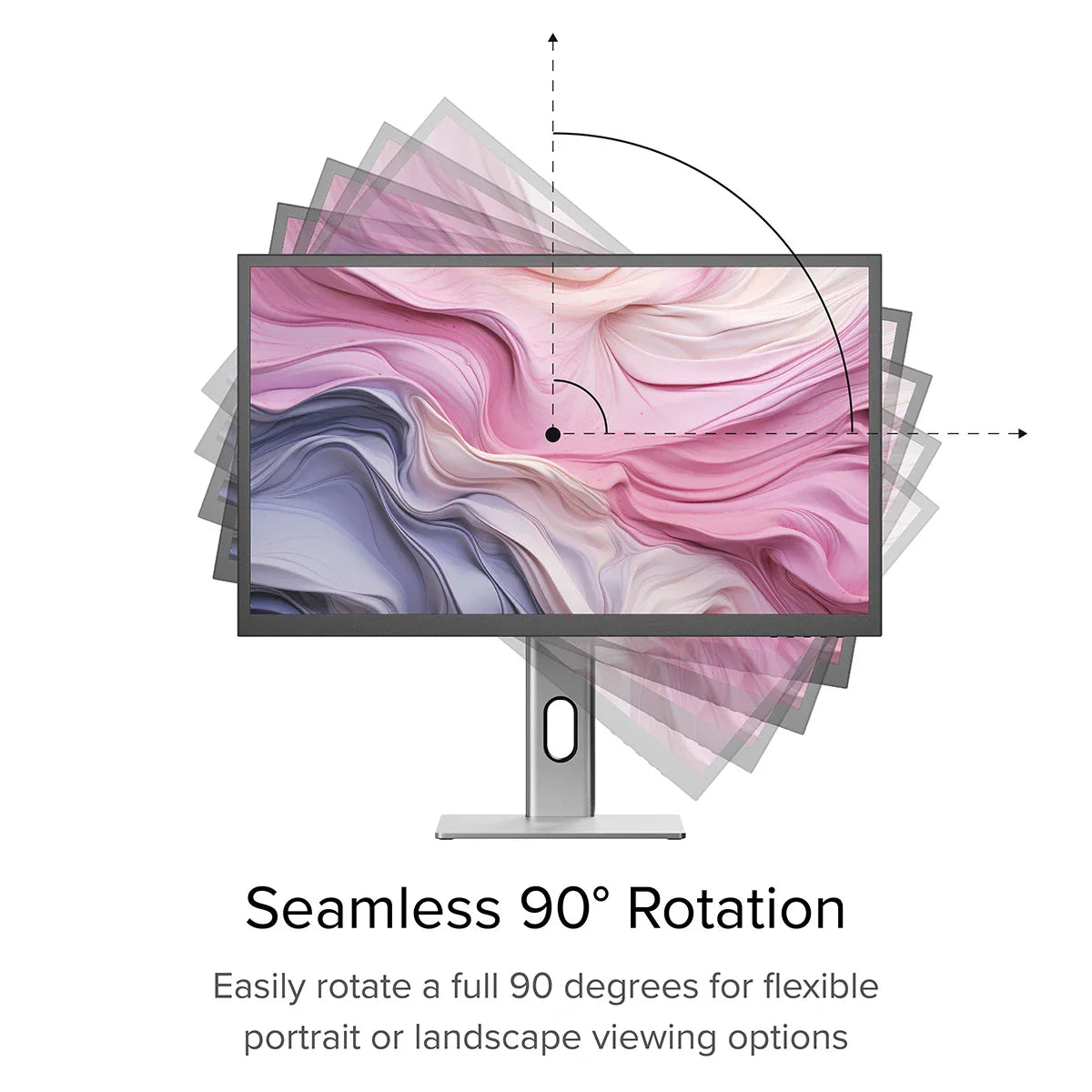 monitor’s height. Rotate the screen between landscape and portrait mode. Or freely tilt the