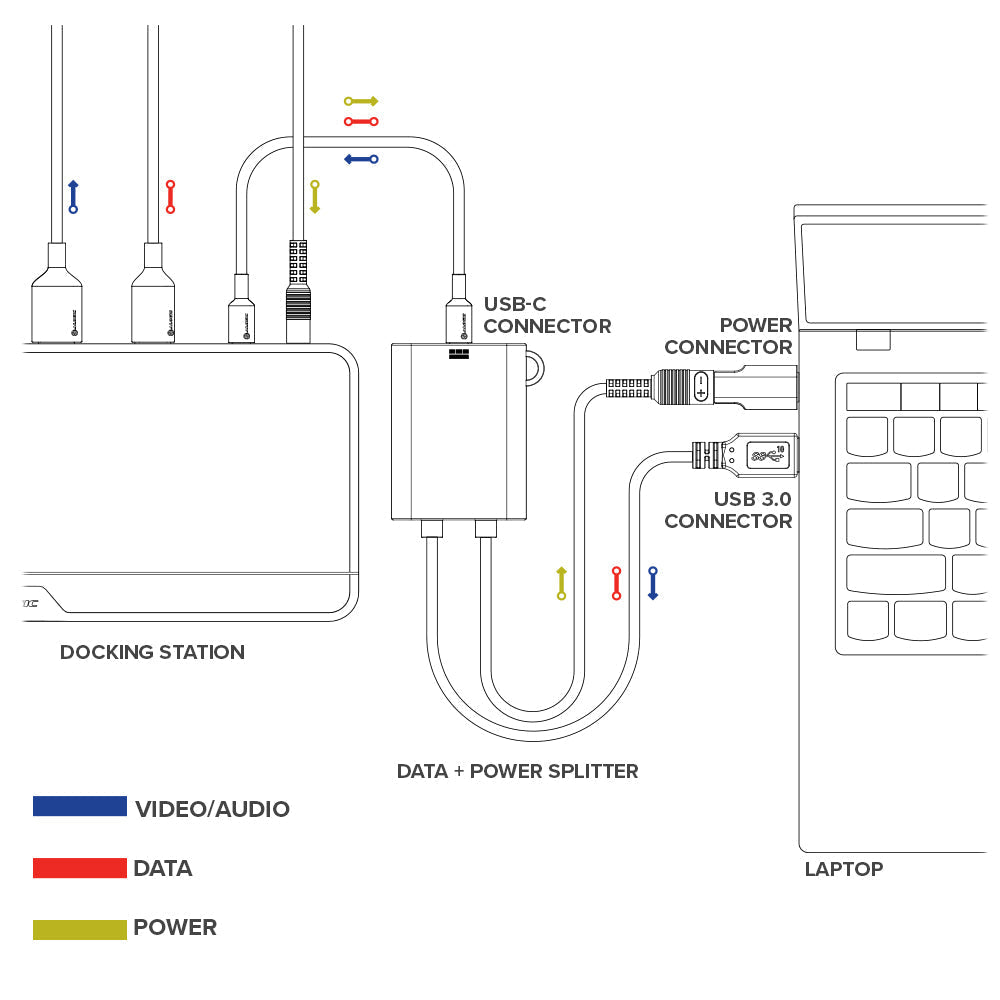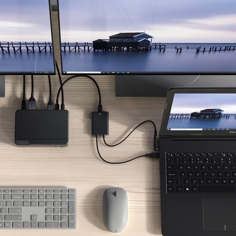 Get video/audio, data & power from the latest ALOGIC USB-C DisplayLink Power dock with Power Delivery with a laptop with USB-A connection and a legacy barrel type.
